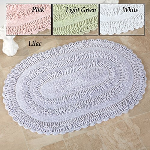 Studio : Collections Etc Publisher : Collections Etc Product Description Reversible Tufted Chenille Oval Bath Rug Description With a beautifully crocheted border and 3 different types of tufting, this cozy chenille rug adds a soft and pretty touch to your home. Comfy under your feet, this rug is perfect by your tub or in front of your sink. Reversible rug is available in 4 colors and is machine washable. Cotton; imported. Oval rug is 30"L x 20"W Color available in Pink, Lilac, Light Green or White. Material Type: Cotton About Collections Etc's Accent / Area Rugs Our wide selection of floor mats includes great options for the whole house. From indoors to outdoors, our collection includes braided mats, cushion mats, coir bristle mats, hooked mats, and more! Our cushion and braided floor mats are perfect for the kitchen or laundry room. They offer comfort for your feet while cooking, washing dishes, or doing laundry. And with our wide variety of colors and designs, you're sure to find one that would look great with your decor.