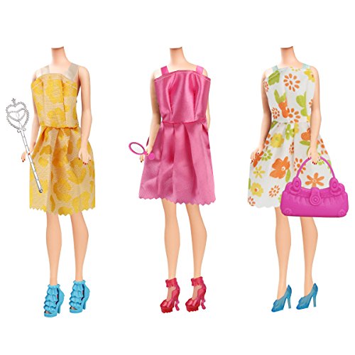 ✔ Super Value Package: 16 Pcs colorful barbie dresses and accessories including shoes bikes and different household items for barbie