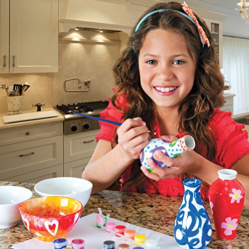 Studio : MindWare Publisher : MindWare Binding : Toy Product Description Kids can paint and oven-bake their creations for a glossy, display-worthy finished art piece. The Studio Art Kit is the perfect addition to any of our Paint Your Own Porcelain sets! This crafty add-on kit includes an alphabet stencil, unique flat paint brush, 3 bold paint colors, gold and silver glitter tube paint, permanent marker, masking tape and sponge. The Porcelain Vases Set includes 3 different 5-inch-tall vases, 12 colors of porcelain paint, a paint brush, reusable stencils and illustrated instructions. The Porcelain Bowls Set includes 3 bowls (each 4 ½ inches in diameter), 12 colors of porcelain paint, a paint brush, reusable stencils and illustrated instructions. (Paint Your Own Porcelain products are intended to be display pieces only and are not created to withstand washing.) 0