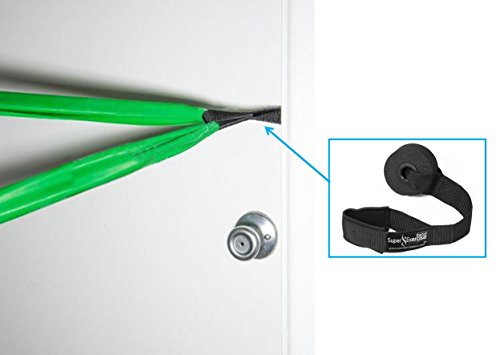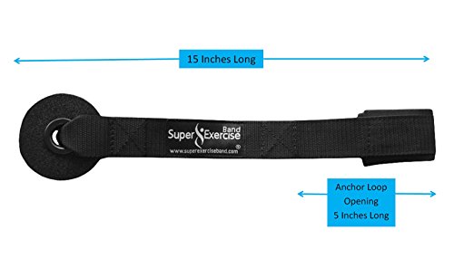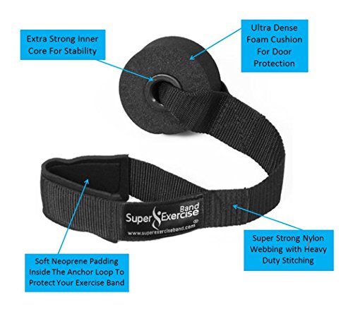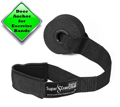 -. Feature : HEAVY DUTY ANCHOR --- The Super Exercise Band® door anchor is made to be super strong. Every anchor is made with thick nylon webbing, heavy duty stitching and a strong nylon inner core. Custom made for flat bands and most cable bands. / PROTECTS DOOR and BANDS --- The soft, dense foam bumper wheel on the anchor will help prevent marks on your door. The open loop end of the anchor is padded with neoprene to provide a smooth, soft surface for your flat or cable style exercise bands to press against when they are stretched. / TURNS DOOR INTO A GYM --- The door anchor wheel is 3 inches in diameter. This extra large anchor size should allow secure use on any side of a standard door (top, bottom, left or right). Included with your order is our Resistance Band Door Anchor Workout E-book© which will be emailed after your order. / EXTRA LONG ANCHOR STRAP --- The door anchor is 15 inches long, so there is plenty of length to reach up and thread the band through the loop hole even when the anchor is mounted at the top of the door frame. Resistance band loop opening is 5 inches in length. So, if you are using bands with firm handles that don't detach, measure your handles before buying. / OUR GUARANTEE --- We provide superior customer service backed by an unconditional manufacturer guarantee. To see our complete line of premium flat resistance band products just click on the SUPER EXERCISE BAND® link at the top of this page under the product title.