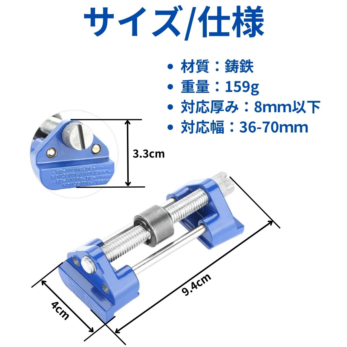 厚み8mm以下 幅36mm~70mm 以下に対応しています。