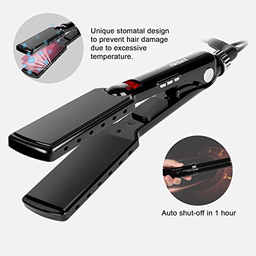 🎁Adjustable Temperature & LCD Display - Simultaneously press "UP" and "DOWN" sign to switch different temperature units of ℃ and ℉;Each time you press the button, temperature rise or drop 10 ℉, the temperature can be adjusted directly among 180-450 ℉ while the LCD screen of the straightener iron can display temperature changes.