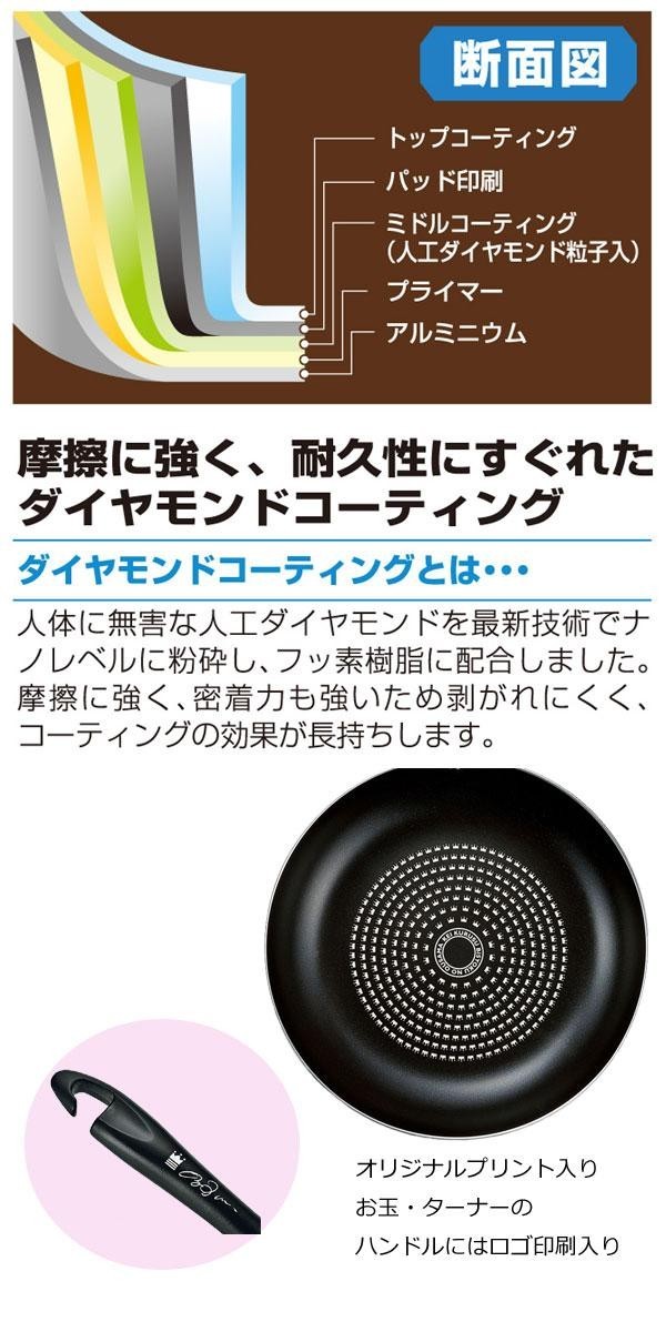 これまでに一万軒以上のお店を食べ歩き、若手シェフの育成と料理業界のさらなる向上を目標にしたレストランを持つ「来栖けい」のキッチンシリーズです。摩擦に強く、耐久性に優れたダイヤモンドコーティング加工がされています。 |
