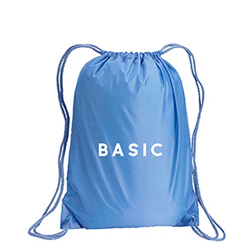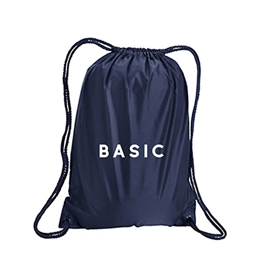 Product Description This durable and stylish nylon tote features "BASIC" on a cinch pack tote with white ink. Bag comes in small and large sizes and is made of a durable 210 Denier nylon and has color-matched draw cords. Printed in the USA on an imported bag. 0