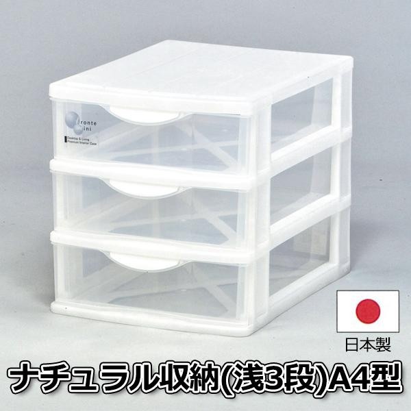 どんなお部屋にもなじみやすい白色でシンプルなデザインです。中身が見えるので整理整頓にとても便利です!! 製造国:日本 素材・材質:ポリプロピレン 商品サイズ:約260×345×280mm 重量:1005g 付属品:取扱説明書 ※サプライヤー直送品 ご注文後3~4営業日後の出荷となります【商品名】ナチュラル収納(浅3段) A4型 MA-03N 0301037