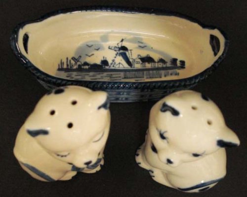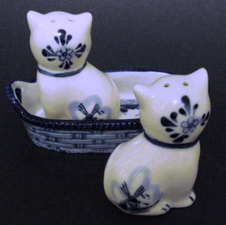 Delft Blue Cat Salt and Pepper Shakers #D431