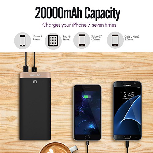 Ultra-High Capacity: iMuto SL200QC 20000mAh capacity is guaranteed with build-in A-Class lithium ion batteries, make it safer to use. enough capacity to charge 2016 MacBook 1.5 times, iPhone 7 almost 7 times, iPhone 6s almost 8 times Galaxy S7 almost 4.5 times, iPad Air almost 2 times. For Nintendo Switch, Please buy imuto USB to Type C cable separately and it can be compatible after the system upgrade.