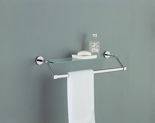 -. Binding : Kitchen -. Brand : Organize It All -. Color : Metallic -. EAN : 5272003691331 -. Feature : Tempered glass / Mounting hardware Included / Chrome finish / Modern / Mounts on wall / Easy to clean / Creates extra floor space -. IsAutographed : 0 -. Label : Organize It All, Inc. -. Manufacturer : Organize It All, Inc. -. Model : 16916 -. MPN : 16916W -. NumberOfItems : 1 -. PackageQuantity : 1 -. PartNumber : 16916W -. ProductGroup : Home -. ProductTypeName : HOME -. Publisher : Organize It All, Inc. -. Studio : Organize It All, Inc. -. Title : Organize It All Glass Shelf with Chrome Towel Bar -. UPC : 014982169167 -. Warranty : Free from defects