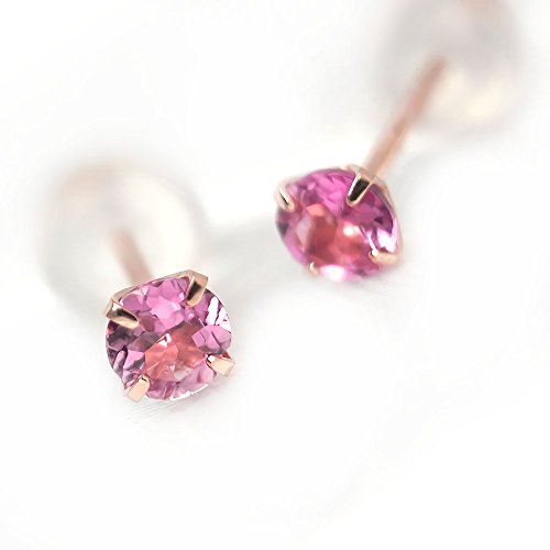 -. Title : K10 ピンクゴールド3mm ピアス スタッドピアス 両耳用ペア 10月誕生石ピンクトルマリン