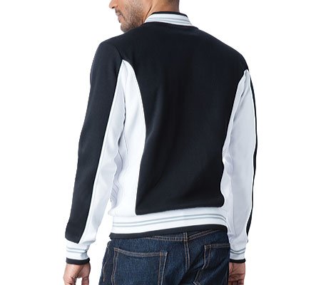 Product DescriptionPay homage to the 80's in this still-stylish track jacket; you may not have been born in the 70's, but you can still flaunt this jacket with flair. Material: Polyester, cotton.0