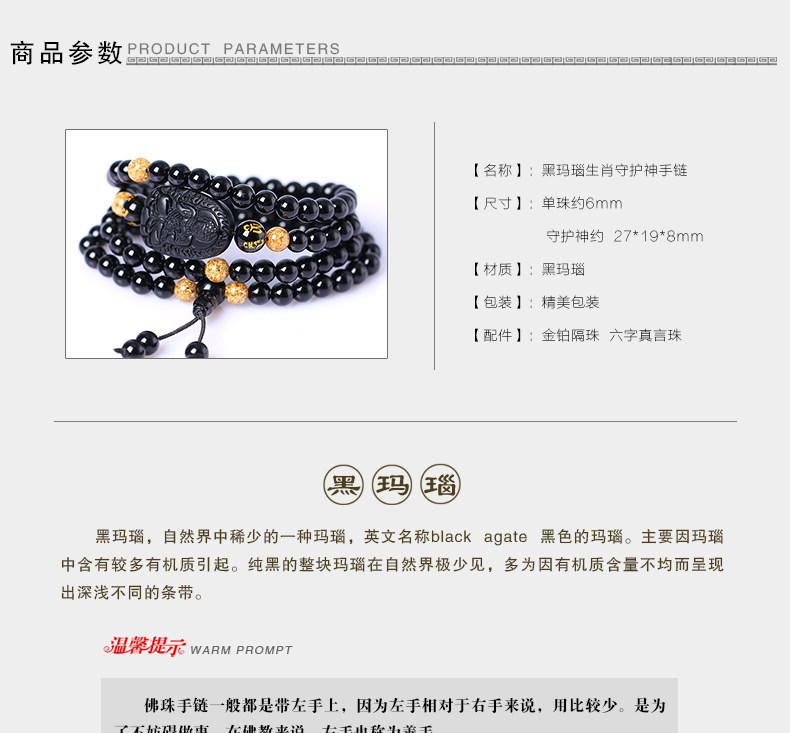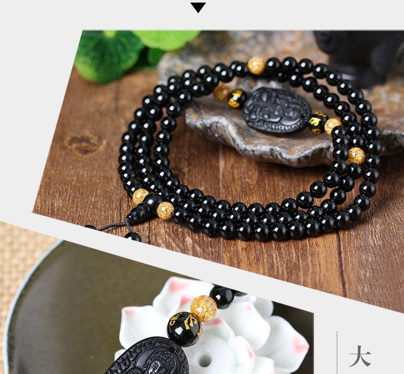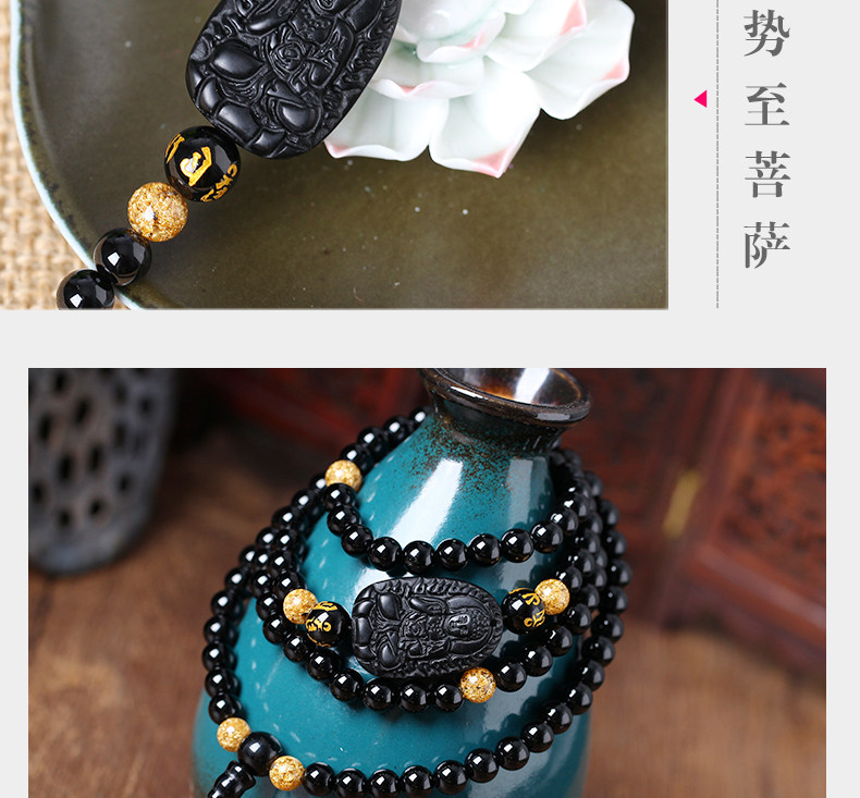 天然黑玛瑙黑曜石阿弥陀佛十二生肖狗猪守护神本命佛佛珠手链