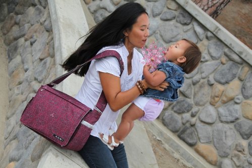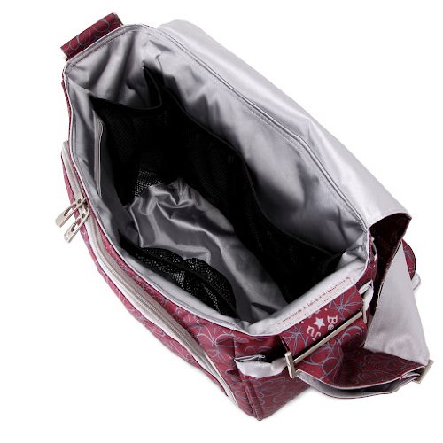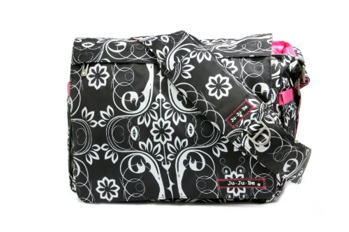 Ju Ju Be's Be All bag is smart, that sums it up. You're smart so your bag should be too. Friendly pockets make it easy to tote along the stuff and anti-microbial linings let you worry about having fun, not fighting germs. Colorful linings make it even more like you- a surprise on the inside. Teflon treated outer fabrics make the bag easy to clean and stain resistant. A picture pocket to keep photo's handy when bragging to friends, mommy pocket with extra long key clip, cosmetics pouch and sunglasses case that you can use to clean and store your lenses, are just a few of the features of this bag. There is also a separate diaper changing station that includes a mess shuttle. No more digging for supplies as they are all in one place. The bag has swivel attachment points for the Be Connected stroller clips that are sold separately. The adjustable shoulder strap includes a top notch shoulder pad with memory foam and a grippy texture underneath for comfort and it won't slide off your shoulder. Crumb drains get rid of the mess so it doesn't stay in your bag. Machine washable. Measures 14" x 11'"x 5.5".Feature