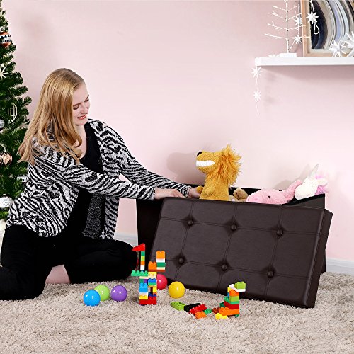This SONGMICS storage ottoman is finely crafted with superior faux leather quality MDF, the after-set-up construction is sturdy solid, decorative appearance matches your interior decor furniture. It can be used as: Storage Chest/Trunk Sundries finally has somewhere to go, no matter blankets, cushions, clothes, or remotes, books... an easy solution to organize your working and living environment. Entryway Shoe Bench It is sturdy as a bench to be placed at the entrance or closet. You may sit on it to put on or take off your shoes. Foot Rest Tired after whole days' work? Here comes a nice place to rest your feet on while sitting on couch. Puppy Step Puppies may use it to step onto your bed or watch out of the window. Coffee Table With ottoman tray, it becomes an ottoman coffee table to place drinks or foods. Multiple Choices We have a variety of folding storage ottomans in size and color, simply search SONGMICS storage ottoman to find more. Specifications: - Color: Brown - Upholstery Material: Faux Leather - Seater Filling Material: High Resilience Sponge - Construction Material: CARB P2 Medium Density Fiber Board - Bottom Material: Oxford Fabric - Product Size: 29 7/8"L x 14 7/8"W x 14 7/8"H (76 x 38 x 38cm) - Product Weight: 13.6lbs Package Contents: - 1 x Folding Storage Ottoman Notes: - Side boards are fixed with staples. Please check and be careful with it if any board looses or sways. ? 0 |