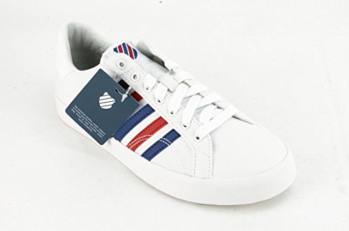 A vulcanized, premium court-inspired sneaker. The Belmont SO features K-Swiss iconic signature five stripe branding, and decorative stitching.