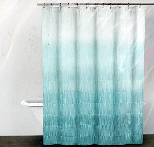 DKNY Fabric Shower Curtain Blue and Turquoise Line Pattern on White Twine Spa