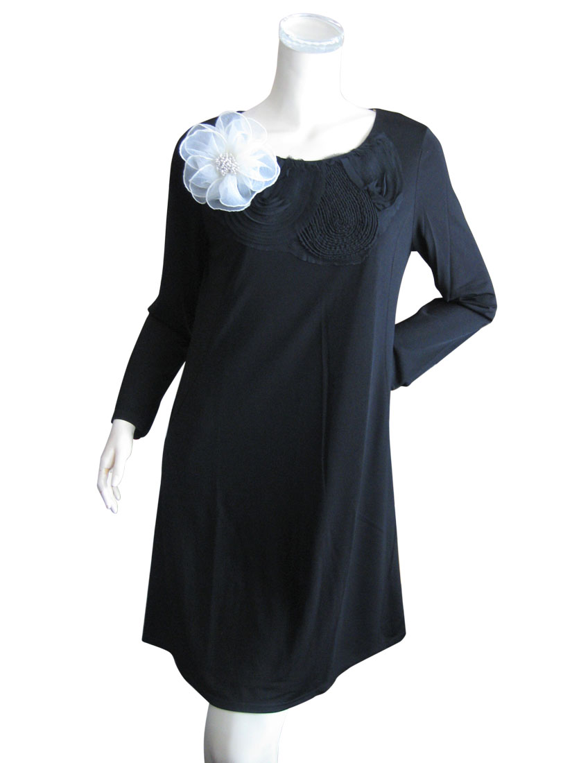 【送料無料】豪華モチーフ付きシンプルワンピース 裏地付き