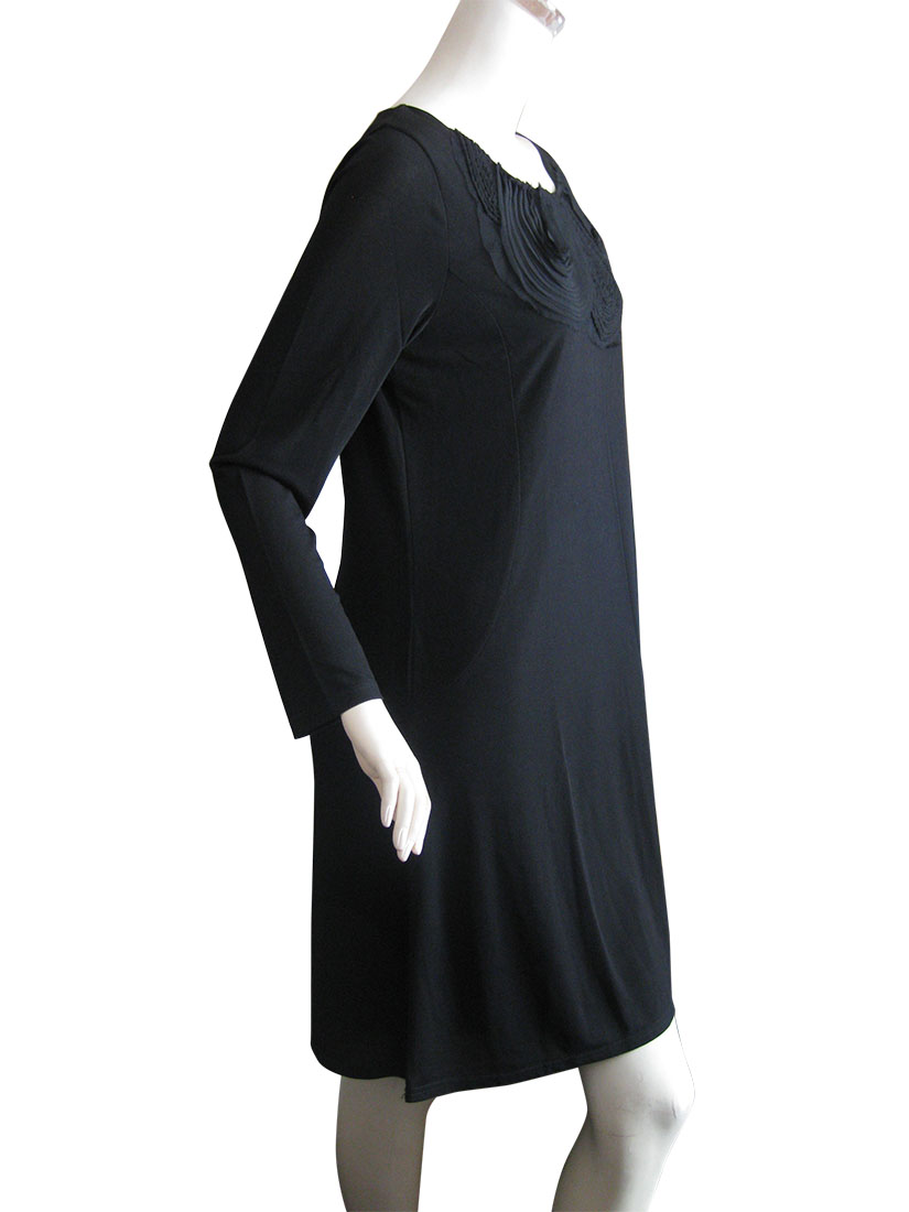 伸縮性のある着心地も肌触りも良いブラックのワンピース。