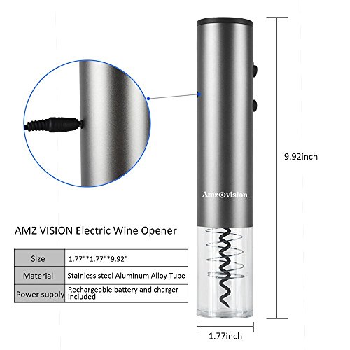 Amz vision Stainless Steel Electric Wine Openers Rechargeable Bottle Corkscrew with Foil Cutter Color Box Package