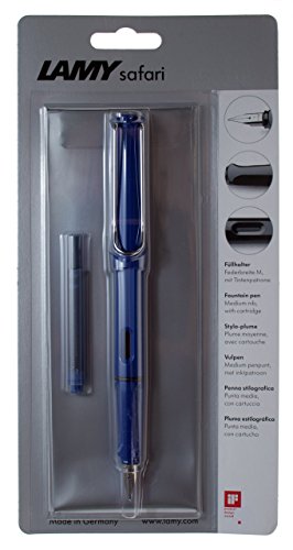 -. Feature : Includes: 1 x safari fountain pen, 1 x blue t10 ink cartridge & lamy storage pouch / Recessed grip guarantees writing comfort / Made of abs plastic with spring loaded metal clip / Supplied with medium nib / Supplied in lamy blister pack packaging