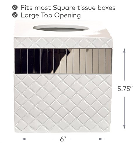 Quilted Mirror Tissue Box Cover Square (6" x 6" x 5.75") – Decorative Bath Tissues Paper Napkin Holder- Modern Serviette Napkins Container- Bottom Slider- For Cute Elegant Bathroom Décor