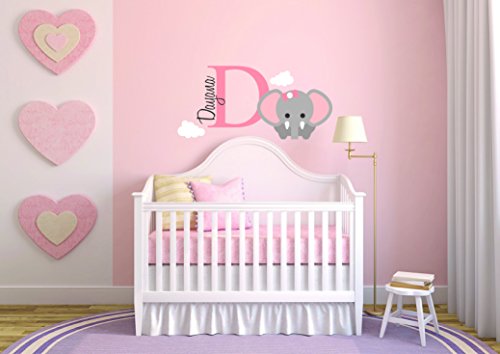 (cryptonite)/Kids' Furniture Room Decor/Room Decor/DIRECT FROM USA/Personalized Name Elephant - Flirty Animal In The Jungle - Boy Girl Unisex Baby - Wall Decal Nu...