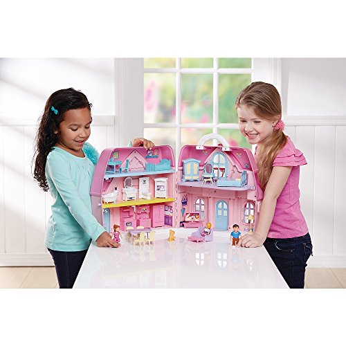 -. Binding : Toy -. EAN : 0803516994203 -. Feature : Includes a dollhouse, 3 dolls, a dog, and furniture / Press the heart-shaped doorbell to hear a ringing sound and a puppy barking / Folds and latches when not in use for easy storage; accessories can be kept inside / Doll figures are articulated -. IsAdultProduct : 0 -. Label : You & Me -. Manufacturer : You & Me -. MPN : unknown -. PartNumber : unknown -. ProductGroup : Toy -. ProductTypeName : TOYS_AND_GAMES -. Publisher : You & Me -. Studio : You & Me -. Title : You & Me Family Cottage Dollhouse Playset -. UPC : 803516994203