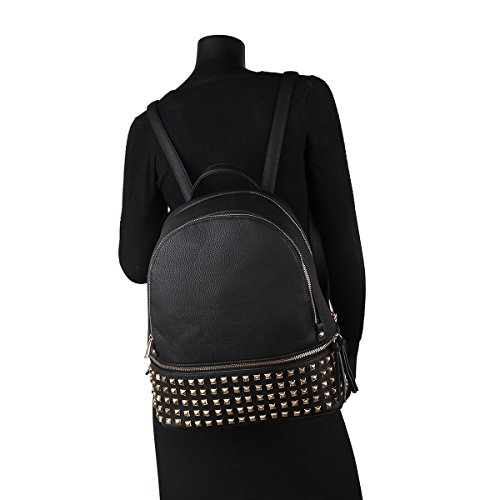-. Brand : Marco -. Department : womens -. Feature : ~High quality PU leather.USA Brand (Imported) / Nice Studded Backpack with Bottom Zipper Compartment:is great for carrying around books, notebooks and even your laptop. Two front zipper pockets hold smaller belongings for easy access. Interior zipped pockets, adjustable straps and drawstring with lock and twist closure. Approx. Size: 13"W x 13.5"H x 6"D~Handle Drop Length: 3''~Shoulder Strap Length: End to End 35'' / Fashion Zip Around Wallet with Wristlet: High Quality Faux Leather Zip Around Top Closure Removable Wrist Strap Eight Interior Card Slots Matching Gold Tone Hardware Approx. Size: 7.75"W x 4"H x 1"D Handle Drop Length: Detachable Wrist Strap Drop Length 9'' / this bag will never leave your side. Fashionable, affordable and convenient, you'll want one in every color! / Limited EDTION - Macro M.Karry Handbag Collaborative Design -. Model : 04-6852 -. ProductGroup : Shoes -. ProductTypeName : HANDBAG -. Size : 13"W x 13.5"H x 6"D -. Title : MMK collection Women Fashion Studded Backpack (04-6852)~Designer Purse for Women ~Multi Pocket Backpack~ Perfect Women Purse and wallet