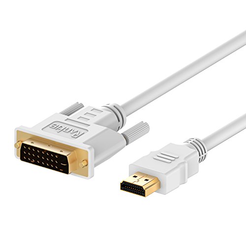 -. Feature : 6FT White. Bi-directional HDMI to DVI cable connects from computers with DVI to HDTVs or monitors with HDMI input; or from HDMI source devices such as Blu-ray player, computer, Apple TV, Roku streaming media player, Play Station 3/4, Xbox One/360, or Nintendo Wii to monitors with DVI input / Supports resolutions at 800x600, 1024x768, 1280x1024, 1600x1200, 1920x1200, and 1080p for high resolution LCD and LED monitors / Premium DVI to HDMI cable engineered with molded strain relief connectors for durability, grip treads for easy pling and unpling, and finger-tightened screws for a secure connection / The combination of gold-plated connectors and bare copper conductors provides superior cable performance and static-free video transmission / Foil & braid shielding minimize crosstalk, suppress noise, and protect against electromagnetic interference (EMI) and radio frequency interference (RFI)