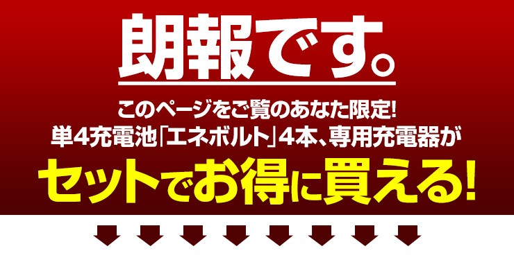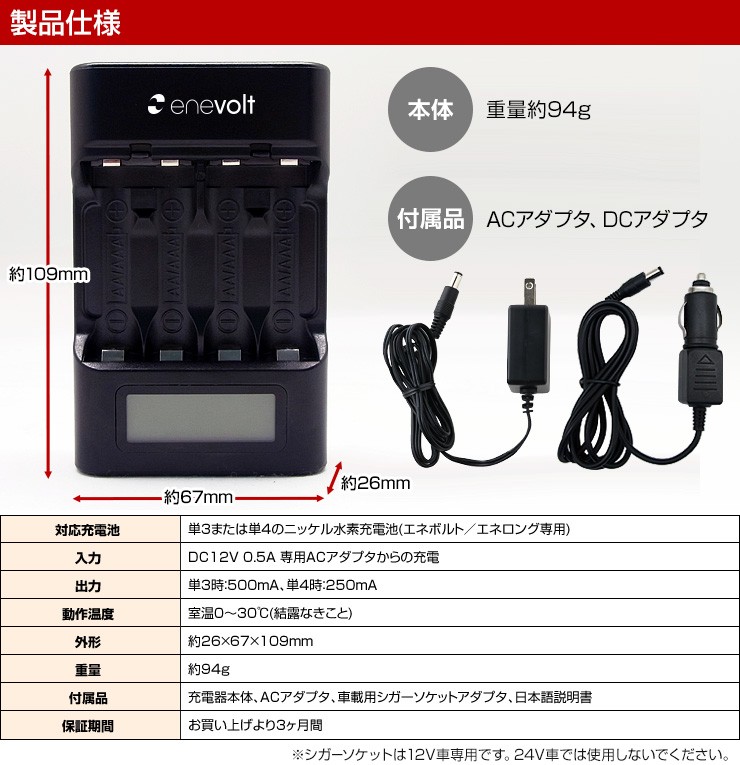 | 対応充電池 | 単3または単4サイズのニッケル水素充電池(エネボルト・エネロング専用) |