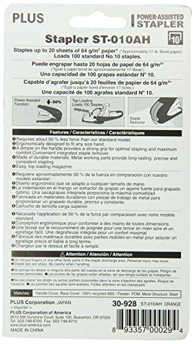 (Plus)/Stationery Party Supplies/Stationery/DIRECT FROM USA/Plus Power Assist Stapler, Orange (pack of 10)