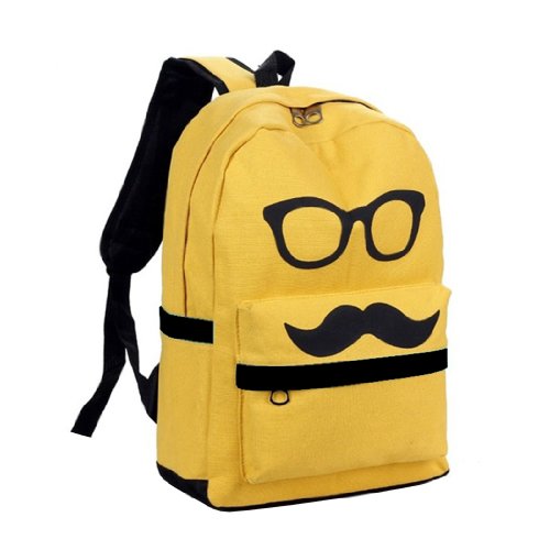 Fashion Cute Funny Yellow Canvas Mustache With Glasses School Campus Bag Backpack Book