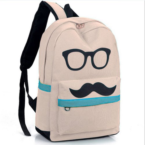 Fashion Cute Funny Canvas Mustache with Glasses School Campus Bag Backpack Book Bags