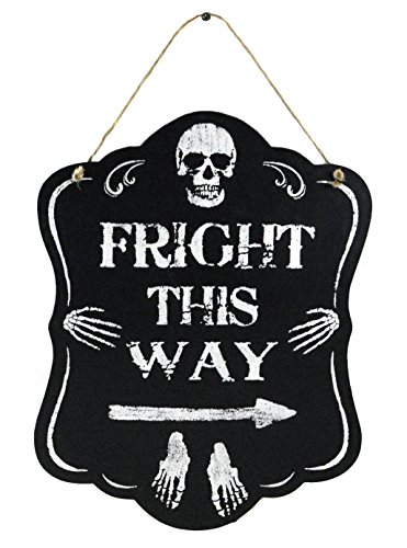 - This sign features the phrase "Fright This Way" along with a skeleton and an arrow pointing right.