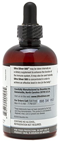 -. Feature : Powerful, Effective and Natural / 500 PPM - 4 oz / Silver was commonly used in past centuries for antimicrobial purposes. Various forms of silver are used today for the same reason. Ultra Silver is safe and non-toxic when used as directed. There are no known drug interactions of any kind. Ultra Silver is a non-prescription dietary supplement providing silver in a safe and bioavailable form. Ultra Silver is made without the use of electrolysis and contains no nitrates or salts. For lower concentrations, Ultra Silver may be further diluted with pure water. In this manner, Ultra Silver provides you with a premium product at the best possible value.