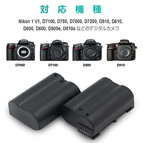 -. Feature : 【完全対応】Nikon EN-EL15バッテリーとの互換性が100%です。対応機種: Nikon 1 V1, D7100, D750, D7000, D7200, D7500, D810, D610, D800, D850, D600, D800e, D810aなど。 / 【高品質&大容量】良質なバッテリーセルで制作し、2100mAhの大容量で長時間撮影ができます。 / 【安全安心】内蔵多重保護システム(過充電、短絡、高温、サージ保護)、耐火性も非常に優れた。 / 【パッケージ内容】2*バッテリー、1*DCデュアル充電器、1*Micro-USBケーブル、18ヶ月のメーカー保証と24時間のカスタマーサービス。 / 【急速デュアル充電器】任意のUSB電源で2つバッテリーを同時に充電することができます。注意:大容量バッテリーなので、バッテリーの充電速度はちょっと遅くなり(約5~6時間かかる)、また、同時に二つバッテリーを充電するとき、うちひとつバッテリーが充電完了された後約1~2時間に次の一つバッテリーも充電完了され、この充電遅いのバッテリー側のインジケータもレッドからグリーンに変わります。これは正常で、ご安心下さいませ。