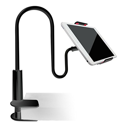 -. Feature : STRONG METAL ARM to support your tablet or phone. / 360 Degree rotation, easy adjustment of the direction of your device. / LARGE CLIP Supports any tablet or phone between 4.5" and 7.2" / STRONG TABLE CLIP, Strong and easy to setup, can be clipped on many surfaces up to 3" thick. / HOLD up to 1.6 Lb