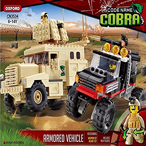 -. Binding : Toy -. Brand : Oxford -. EAN : 8804616953048 -. Feature : FULLY COMPATIBLE with Other Major Toy Building Set Brands / Build Your Own Adventure with This Military Toy Building Construction Set / Features Real Moveable Parts and Rolling Wheels So You Can Play With it After Building / Includes Cool New ARTICULATED Minifigures / Appeals to Both Adults and Kids -. IsAdultProduct : 0 -. Label : OXFORD -. Manufacturer : OXFORD -. PackageQuantity : 1 -. ProductGroup : Toy -. ProductTypeName : TOYS_AND_GAMES -. Publisher : OXFORD -. Studio : OXFORD -. Title : Oxford Code Name Cobra Armored Vehicles Military L.E.G.O Style Building Construction Set CN3534
