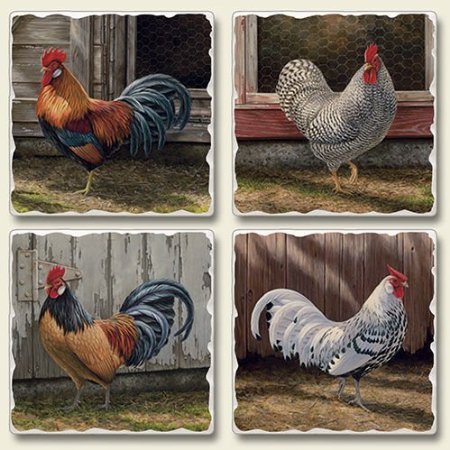 Barnyard Roosters Tumbled Tile Coasters, Set of 4