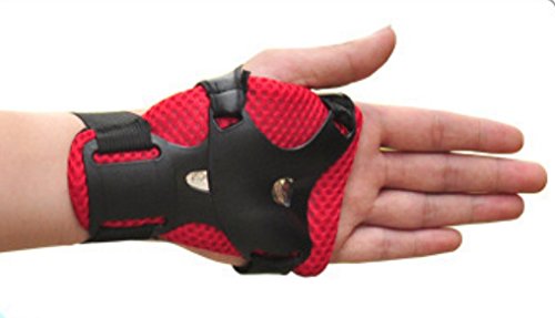 -. Feature : Support areas: wrists,elbows, knees / Structure: Plastic and polyester fibre with meshes / Hook and loop strap are adjustable,suitable for the children aged 3-10 / Perfect for roller skating, biking, minibike riding and other sport / A protector for your kids in sports
