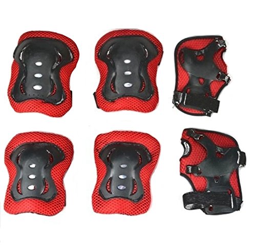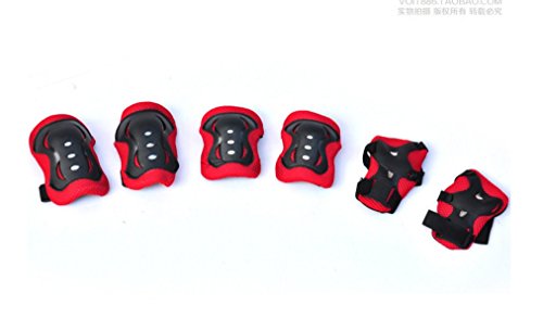 -. Title : 6-IN-1 Children's Skateboard Riding Protective Gear Wrist Elbow Knee Pads Black and Red