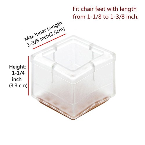 CHECK SIZE BEFORE PURCHASE: These square chair leg floor protectors fit chair legs with length from 1-1/8 inch to 1-3/8 inch.
