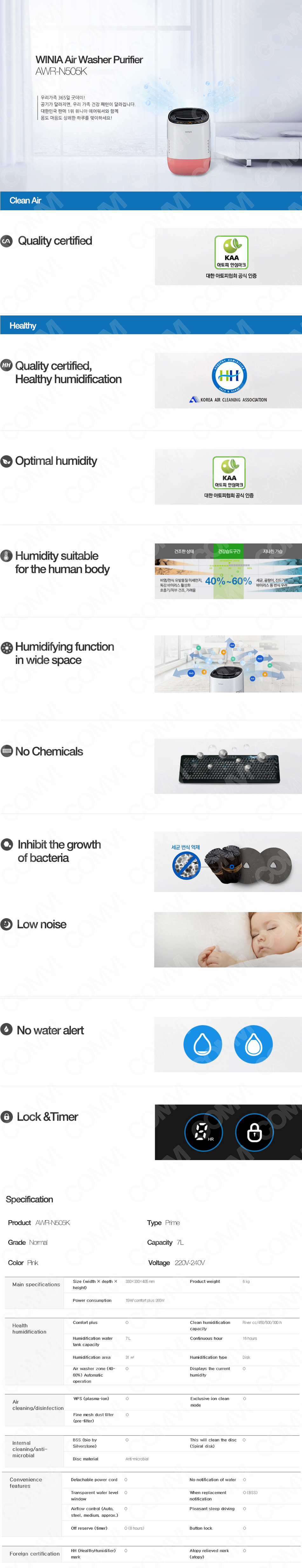 [WINIA Air Washer Purifier AWR-N505K deep sleep Anti-Virus humidifier 31m2]