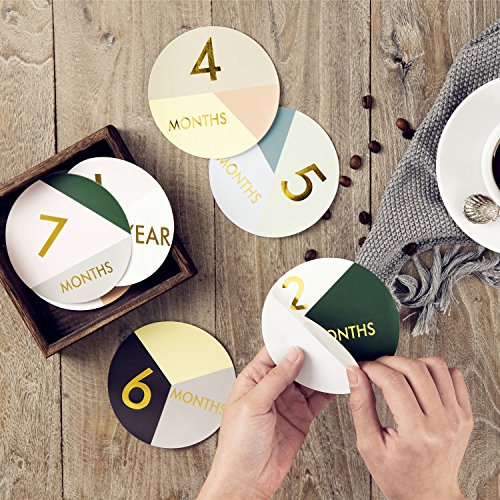 -. Title : MAGJUCHE Gold Foiled Monthly Baby Milestone Stickers, Baby Belly Stickers, First Year, Months 1-12, Shower Gift