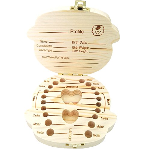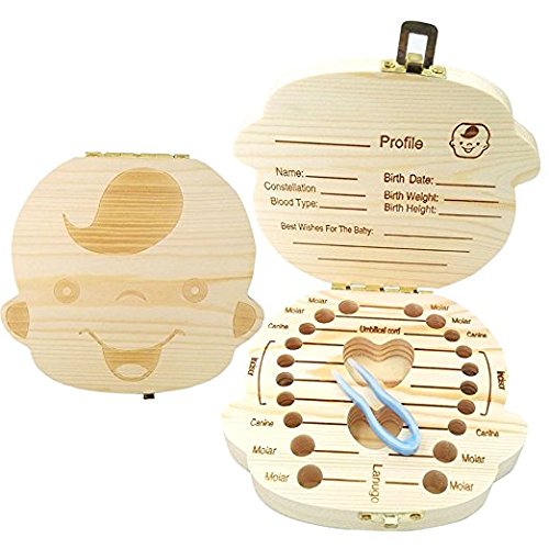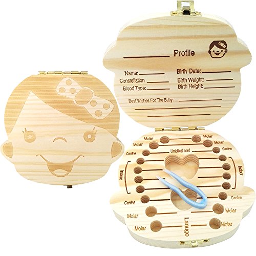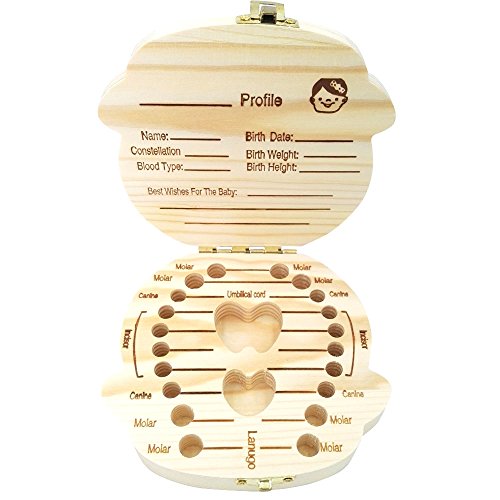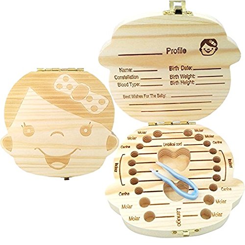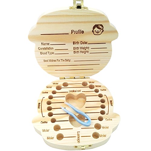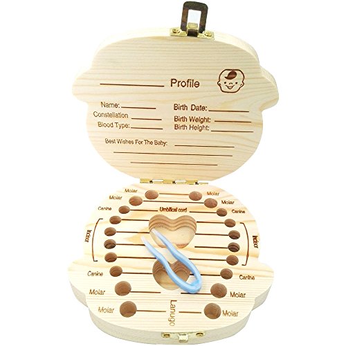 -. Title : PAMBO Tooth Fairy Box Keepsake | Wonderful Mothproof Wooden Box, With Carved Spots For Each Deciduous Baby Tooth & Personal Information List | Great Baby Shower Gift | Bonus Tweezers