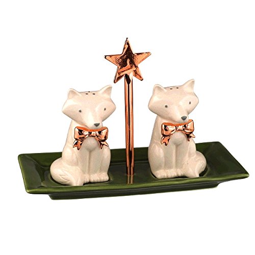 Grasslands Road Merry and Brights Fox on Tray Salt and Pepper Shaker Set, Ceramic
