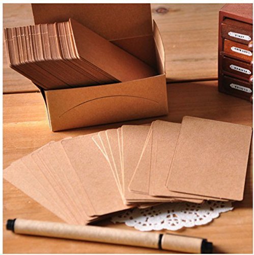 AKOAK 100 Pieces 9 x 5.4 cm Kraft Paper Card Double-sided Available Blank Kraft Cardboard Word Card Message Card DIY Blank Gift Card