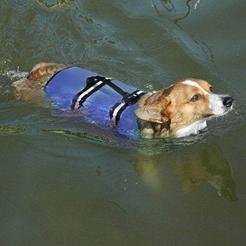 Vvhome Float Coat Dog Life Jacket Pet Saver Ripstop Quick Release Easy-Fit Adjustable Dog Life Preserver with Reflective Stripe for Small Medium Large Dogs (Blue, S)