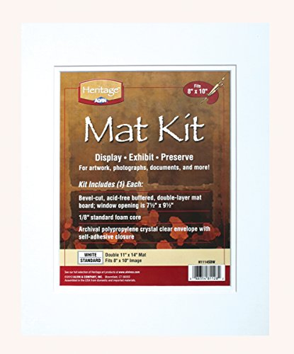 Heritage Arts H0810SDB Standard Series 8 inches x 10 inches Pre-Cut Double Layer Black Mat Kit (White, 11" x 14")