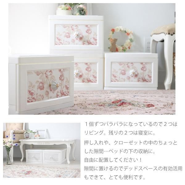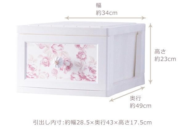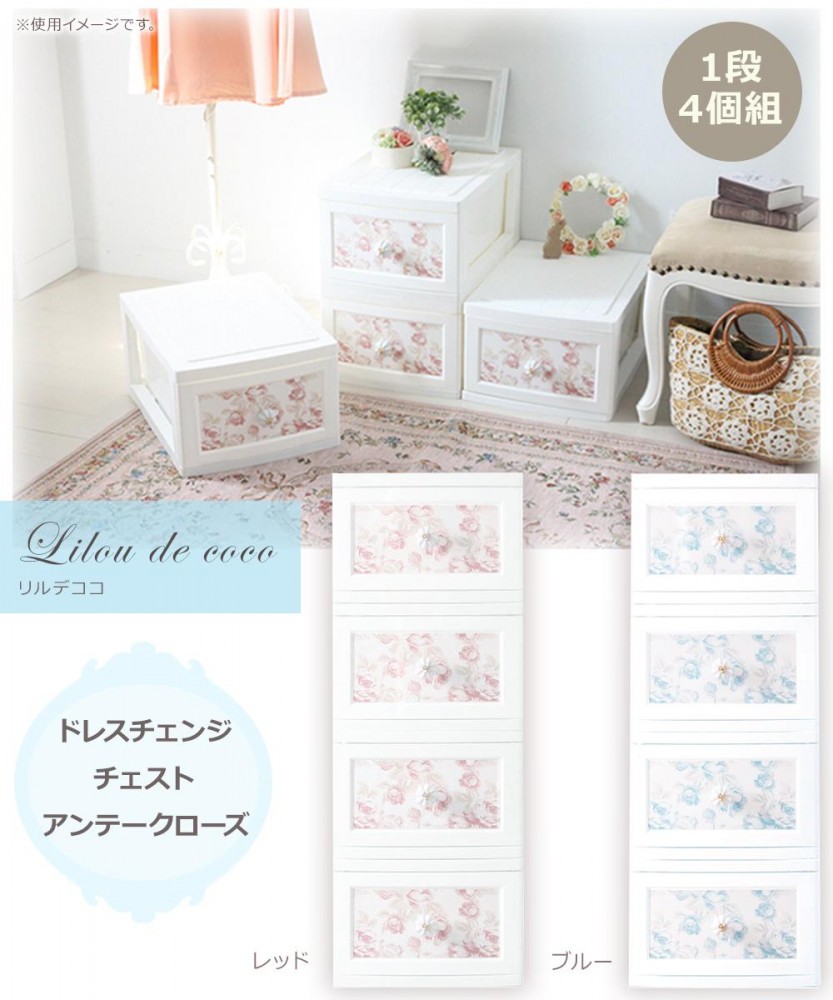 | 横一列に並べたり、縦に重ねたり、アレンジ自由に可愛く収納ができるチェストです♪上品なアンテークローズ柄でお部屋も華やかに。ベッドルームはもちろん、リビングや洗面所など、場所を気にせずお使いいただけます。 |