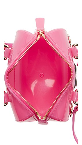 Candy sweetie mini satchel cross body with floral appliques, removable cross body strap, 100 percent pvc, unlined, dust bag included, made in Italy.